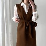 Dies Midi Dress Casual Sleeveless Belt Dress Female New