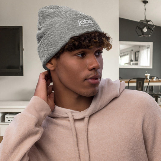 Ribbed knit beanie.