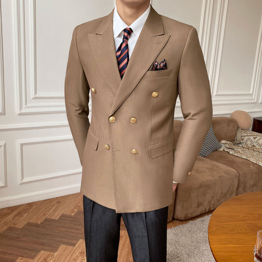 High-end Wedding Bridegroom Suit Suit Closure Collar Suit Three-piece Suit Men Caramel